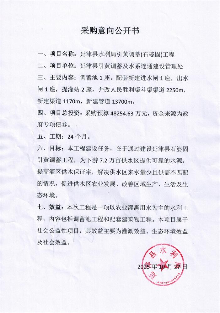 | 1 | ******水利局 | ******水利局引黄调蓄(石婆固)工程项目 | 48,254.63 | 2025年11月 |