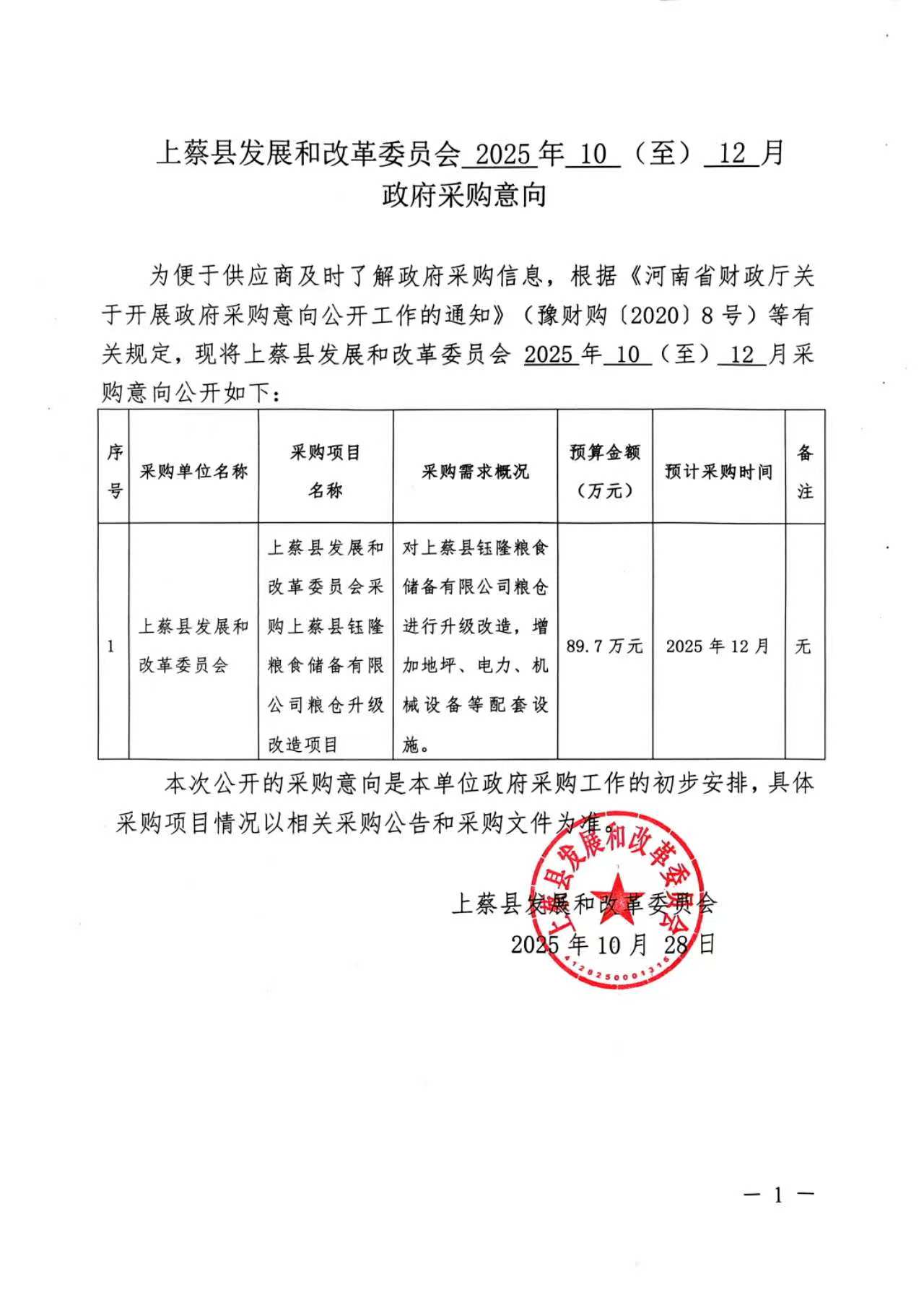 为便于供应商及时了解政府采购信息,根据《河南省财政******委员会 2025年10(至)12月采购意向公开如下: