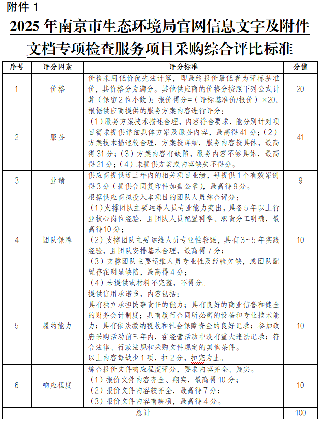 根据《中华人民共和国政府采购法》《中华人民共和国招标投标法》等有关要求,我中心对2025年南京市生态环境局官网信息文字及附件文档专项检查服务项目进行公开采购,特邀请供应商前来投标。